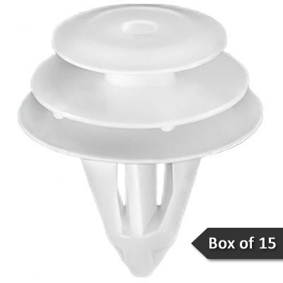 This is a box of 15 trim panel retainers which fit Nissan (1999-present), and Infiniti (1999-present) models. It matches Nissan OE Part Number 01553-09791. Although this retainer is OE for Nissan vehicles, it is universal and can be used on any vehicle or application requiring this type of retainer and meeting these specifications.