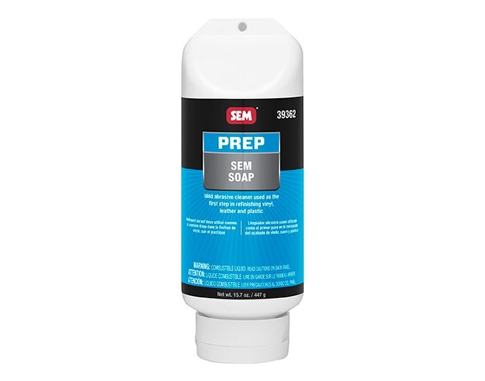 SEM Soap is a mild abrasive cleaner used as the first step in refinishing flexible substrates.